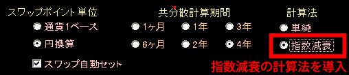 3).相関係数の計算に指数減衰を用いた標準偏差を使用可能